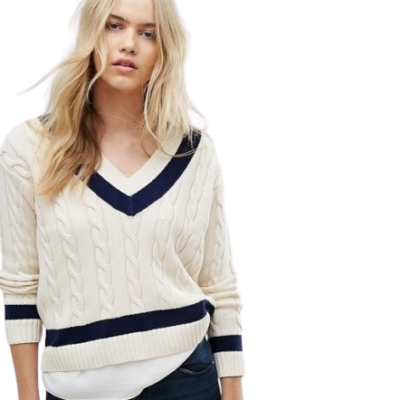 Wool Women Cricket Clothing Sports Sweater Cable Knit V Neck Heavy Wool Acrylic Cable Knitted Full Sleeve Sweater