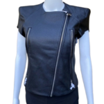 Black Faux Leather Short Crop Sleeve Biker Jacket/ Size extra Small Condition is New with tags.