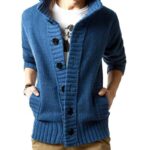 Men Chunky Collar Cardigan Sweater Buttons Knitted Jumper Coat Jacket Warm Tops